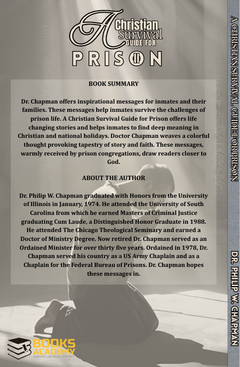 Dr. Chapman offers inspirational messages for inmates and their families. These messages help inmates survive the challenges of prison life. A CHRISTIAN SURVIVAL GUIDE FOR PRISON offers life changing stories and helps inmates to find deep meaning in Christian and national holidays. Doctor Chapman weaves a colorful thought provoking tapestry of story and faith. These messages, warmly received by prison congregations, draw readers closer to God.